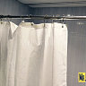 Чтобы при принятии душа брызги не летели на пол и мебель, необходимо оградить зону мытья от остального пространства шторкой. Она подвешивается на специальный элемент, именуемый карнизом (штангой). Вместо нее можно установить стеклянные либо пластиковые дверки, однако душ получится очень громоздким. Поэтому шторка — оптимальное решение для компактных ванных комнат, коих в многоквартирных домах большинство.