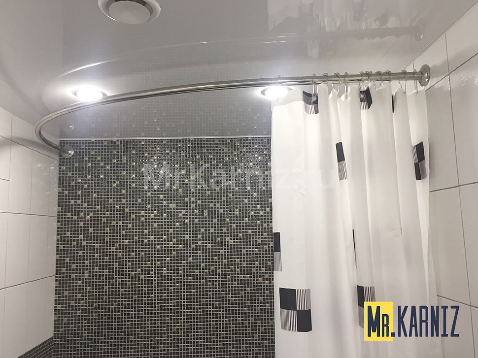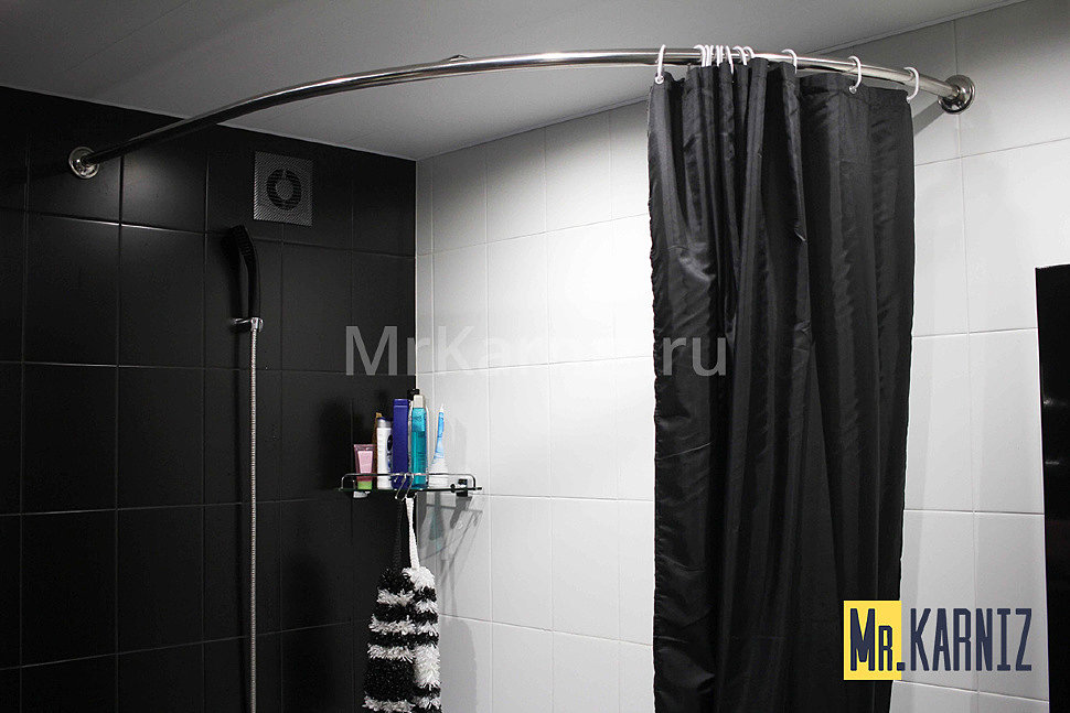 Каждая такая штанга в точности повторяет конфигурацию поддонов (ванн). Благодаря карнизам с нанизанными на кольца шторками душевая смотрится элегантно, создается единая законченная композиция.